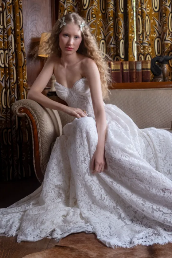 Romantic bohemian wedding dresses for your creative soul. Handcrafted bridal gowns in ethereal lace, soft tulle, and flowing chiffon—perfect for beach and destination weddings, free-spirited brides. Modern boho.